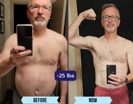 I’m down from 204 to 160 lbs. I was struggling after I got divorced and just gained so much weight. I didn’t feel good, didn’t look good and I’m feeling a lot better and looking better now. So thank you.